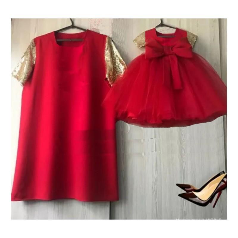 Комплект платьев мама дочка фемели лук рукава пайетки