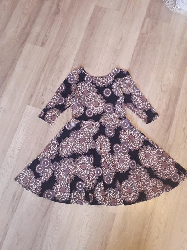 лёгкое платье, сезон весна-осень, принт объёмный, юбочка клёш