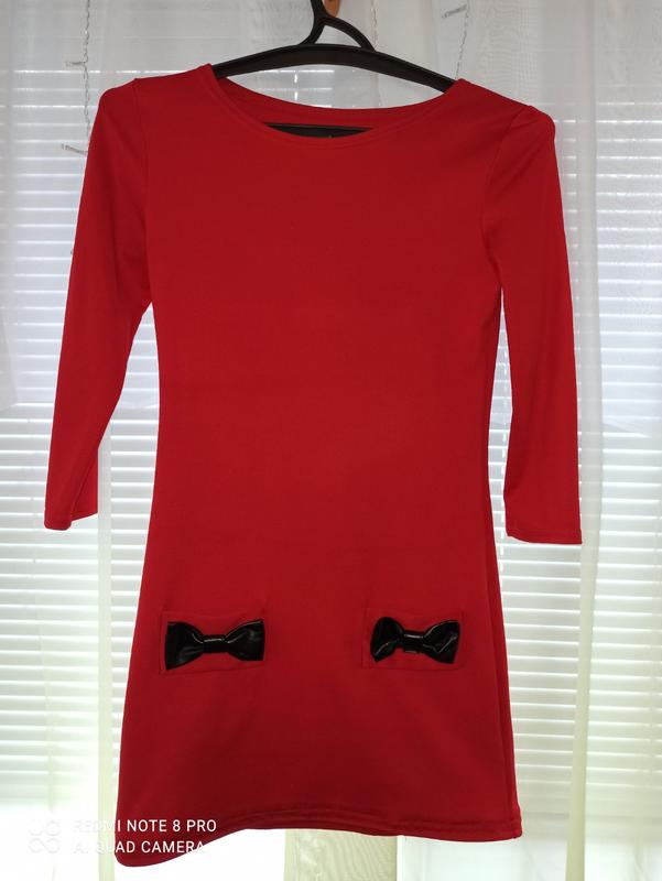 Красивое красное платье с рукавом 3/4 и кармашками. Бантики эко- кожа