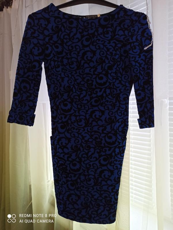 Платье синего цвета с очень красивой спинкой,имеются карманы. Реальный цвет на втором фото