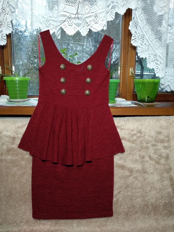 Теплое платье с баской, декорированное пуговицами. Новая, с биркой. Замеры: длина от плеча 80 см., полуобхват груди 38 см, полуобхват талии 36 см.