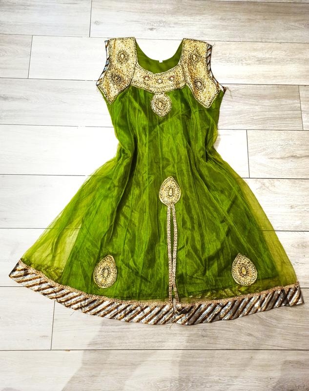 Дякую, що зайшли у мій магазин До вашої уваги карнавальне плаття трав'яного кольору Хороша тканина, якісні вишивки, усі камінчики на місці Дефектів немає Заміри: Від бірки до низу 99 см Від плеча до плеча 42 см Від підмишки до підмишки 55 см Півобхват талії 54 см Висота рукава 20см Якщо зробити додаткові фото/заміри Дивіться інші мої об'яви, обираючи кілька речей ви економите на доставці Вдалих вам покупок
