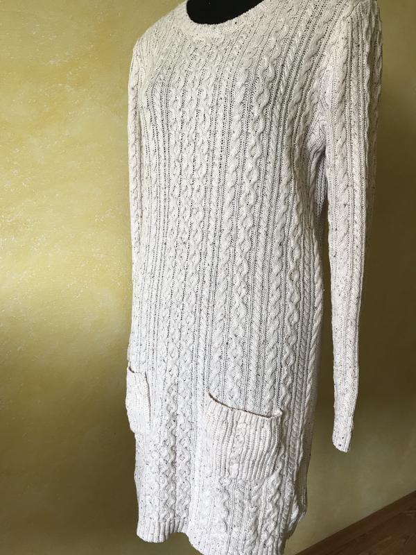 Вязаное платье с карманами. Размер указан 10 Состояние идеальное. Цвет светлый беж с серой смешанной нитью . Длина изделия 92 см, рукав от плеча 64 см, ПОГ 52 см, ПОТ 50 см, ПОБ 52 см, все замеры не в натяжку тянется Состав: Шерсть, акрил