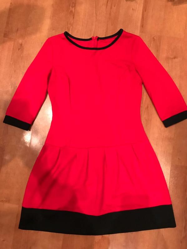 Червоне яскраве плаття з рукавом по лікоть.