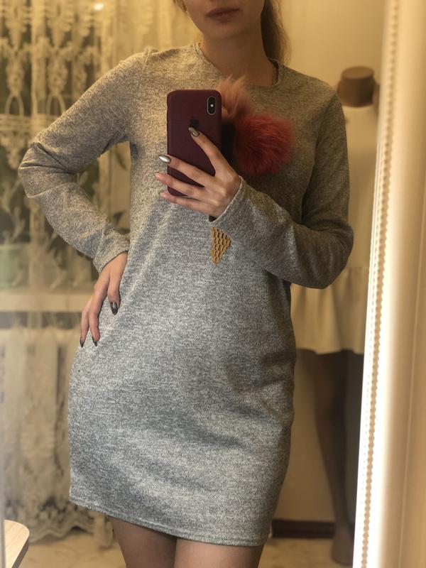Платье с длинным рукавом и бубончиками { они съемные} размер М, длина 82см Состояние хорошее , есть дефект. На спине не много покошлатилось { при носке не заметно }