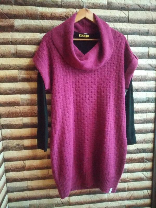 Річ без бірки ,але не одягали жодного разу. Дуже мягка до тіла та легенька. Кофтинка не йде в наборі,але при замовленні цієї речі положу в подарунок. Дуже гарний колір фуксія. довжина-83 пог-49 поб-51, гарно тягнеться.