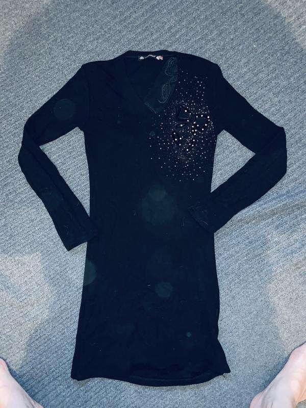 Чёрное платье со стразами. Состояние отличное. Стразы переливаются. Размер s-m. Ткань хорошо тянется и ложится по фигуре.