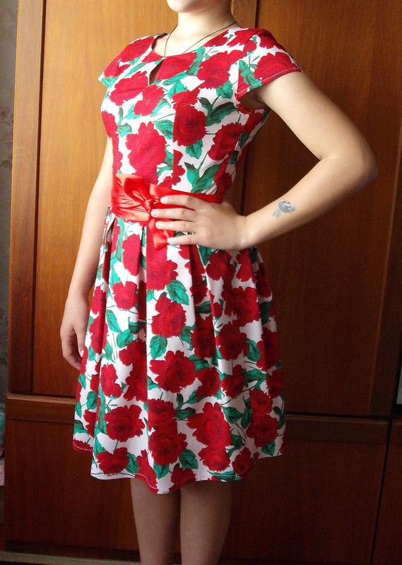 Плаття 40-42 р. тканина стреч-котон, є атласний поясок. Плаття одіване 1 раз, в чудовому стані. Заміри плаття: ПОГ= 43 см ПОТ= 32 см довжина - 84 см.