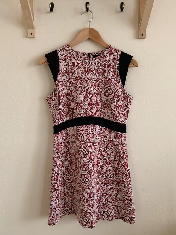 Стильное платье лаконичного кроя от бренда Zara. Свободный крой на талии, застежка на молнию. Черные детали из трикотажа в рубчик. Ткань плотная, с эластаном. Состояние нового.