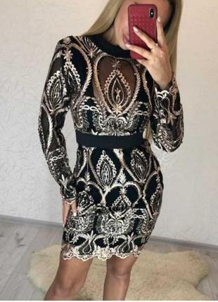 ХИТ! Шикарное платье С вышитым узором. Нежная , фатиновая основа+вышивка. Размер С-М. Цвет : золото Длинна 95-96 см