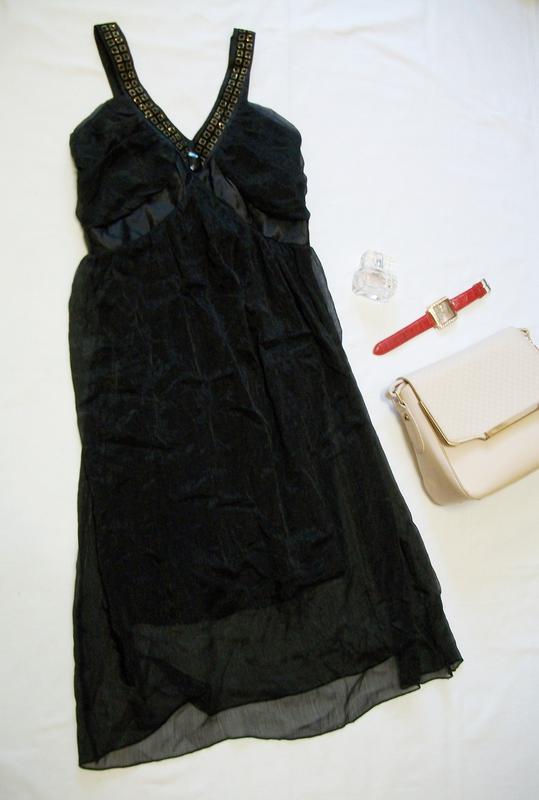 Длина платья - 94 см. Талия свободная, на спине резинка, потому обхват груди так же свободный от 80-100 см.