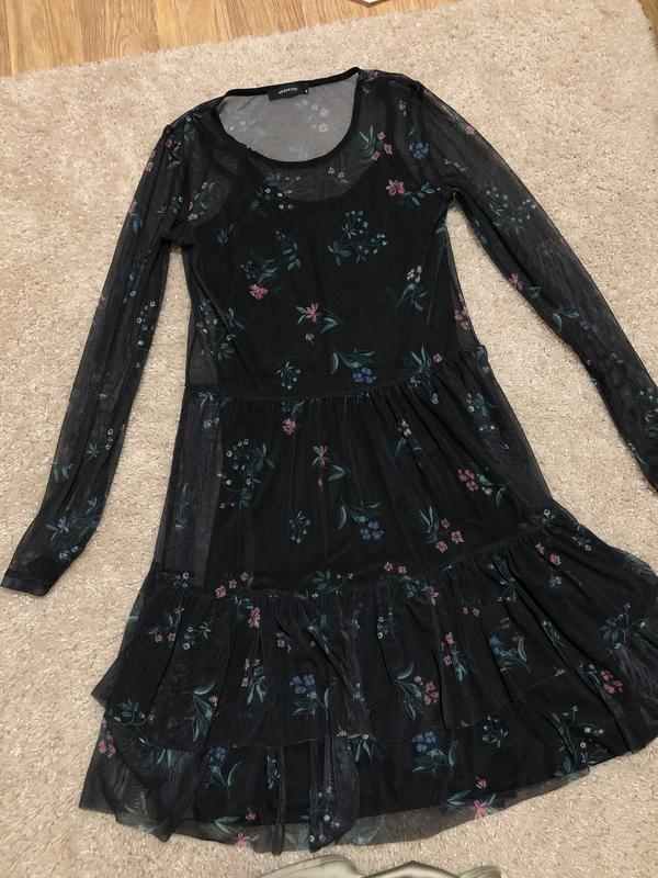Красиво платье из двух слоев: сеточка и нижнее чёрное платье Одевала раза два Состояние идеальное Рукав 58 Длинна 84 Садится очень Хорошо по фигуре, тянется Подойдёт на С и М