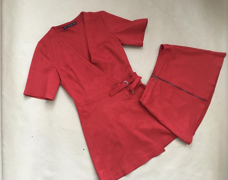 Очень стильное платье на запах , красивого классически красного цвета от любимого бренда Zara,материал типа замшевого, очень красиво садится по фигуре .одевалось несколько раз Замеры: Длина-81 Рукав-25 Плечи-35 Талия ПО-33