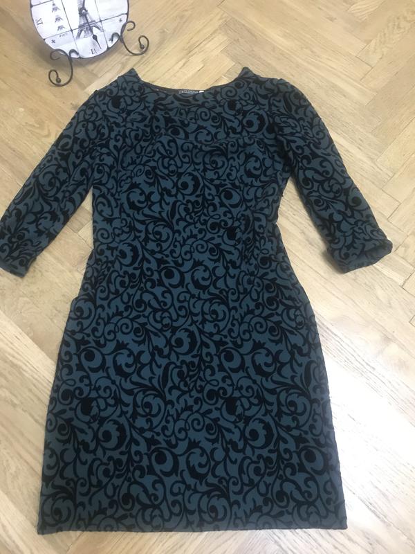 Платье темно зелёного бутылочного цвета,стретч, Плечи 8 см, рукава 42 см,ОГ-46 см, ОБ-44 см. Спереди есть карманы.длина 82 см