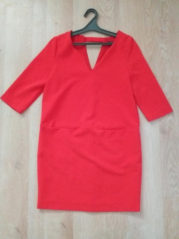 Пряме плаття з кишенями з v подібним вирізом Довжина 83, пог 45, пот 45, поб 48. Костюмна тканина з підкдадкою. Розмір с, сх