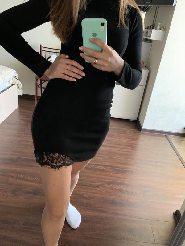 Сукня чорного кольору міні Матеріал замш Розмір с, але краще на хс Внизу ефектне кружево Приємне до тіла