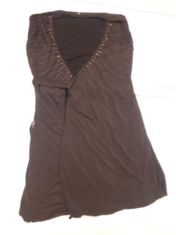 Платье с запахом коричневого цвета размера М. Бренд Didi. ПОГ 46 см, ПОТ 42 см, ПОБ 58 см, длина 100 см. Состав эластичный мягкий полиестер.