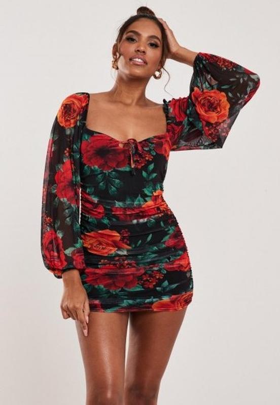 Красивое платье от Missguided новое с этикетками размер uk-8 S/M ткань очень хорошо тянется верх сетка с принтом цветов. низ черная подкладка. рукава идут в форме воланов. материал из сетки. на манжетах на резинке платье пресобрано по боках и это придаст вашему силуэту еще более сексуальный вид ткань очень хорошо тянется!!! Замеры Длина 85см. Полухват груди 35см. Тянется +10-15см. Пол обхват талии 33см. Тянется +15см. Пол обхват бедер 47-46см. Тянется +10-15см. Длина рукава 70см. Состав ткани 100% полиэстер