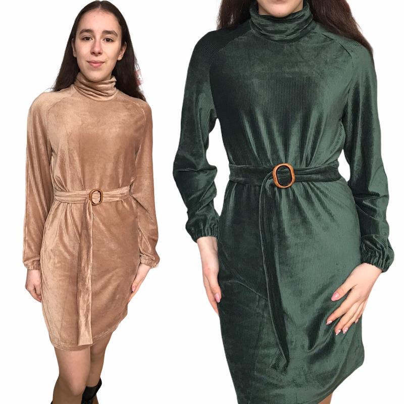 🔥Ціна 350гр 🔥 Сукні в двох кольорах: зелений та бежевий. Тканина велюр в рубчик. Пасок в комплекті. Розміри: xs, s, m.