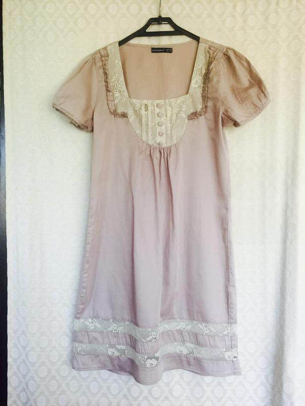 Красивое летнее платье пудрового цвета из приятной легкой ткани с кружевами. Длина-86см ОГ -90см От-80см Об-96см