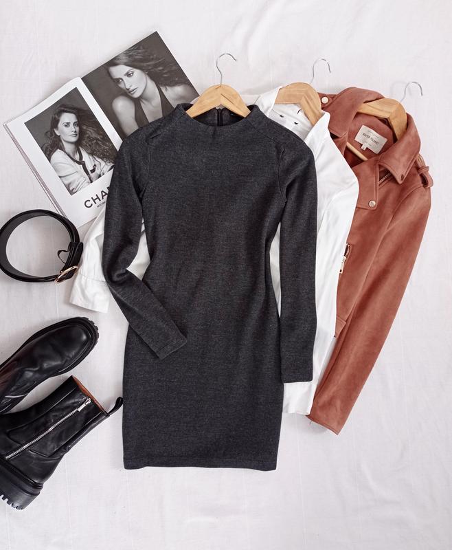 темно сіра сукня міні від Zara ззаду на замку, тканина трикотаж рубчик, добре тягнеться, сідає по фігурі, розмір S, ПО грудей 43 см тягнеться до 50 см, довжина 83 см