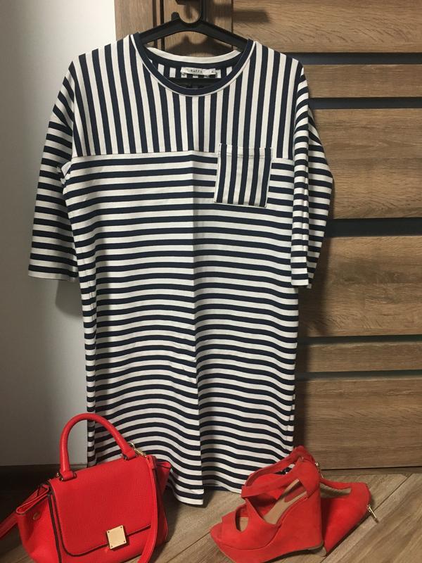 Цікава щоденна сукенька) завжди актуальна полоска і дуже класна якість, досить плотна , розмір вказано М та добре буде і на Л, довжина 90