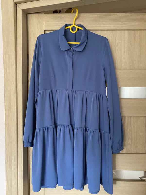 Сукня небесно-синього кольору, розмір S-M, дуже красиво виглядає під каблук і під черевики на грубій підошві. Розміри надам по запиту.