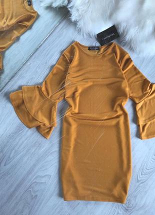 Горчичное платье с рукавами воланами Новое! С биркой! Размер 10 Плечи 37 см Подмышки 47 см Рукав 44 см Длина 83 см