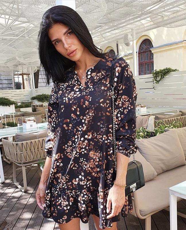 Стильное платье, свободный крой, рукава на мягкой резиночке, поясок в комплекте. Яркий принт на чёрном фоне. Размер 44-46