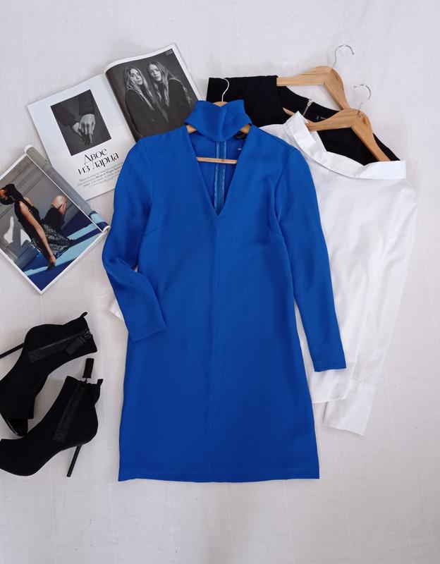 ефектна сукня з чокером в насиченому синьому кольорі фірми Top shop, ззаду на замку, красиво сідає по фігурі, розмір вказано 36, По грудей 46 см, довжина 88 см