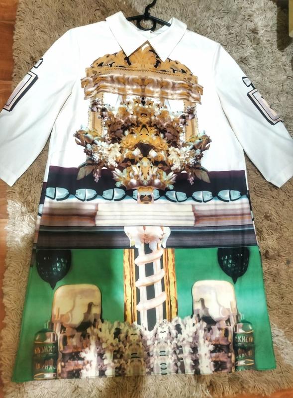 Платье с оригинальным принтом. Размер 46. Рукав три четверти. Без дефектов.