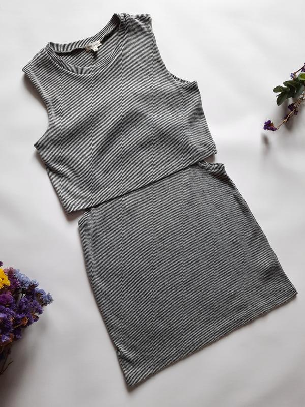 Класное серое платье в рубчик по фигуре с открытыми боками.На невысокую девушку