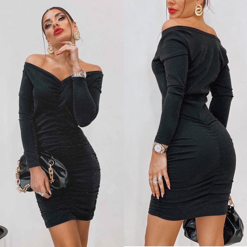 Платье Мод 345АК Ткань креп дайвинг с люрексом Размер СМ, ЛХЛ Цвет чёрный, зелёный