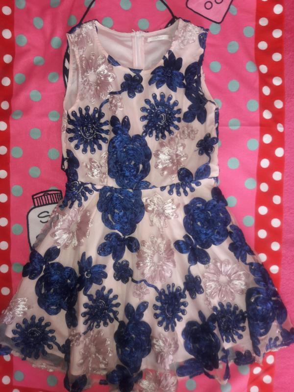 Плаття ніжно-персикового кольору з вибитими квітами кольору пудри і синього....Вдале поєднання....Якість супер!!!😉🖒💥💣💥💣