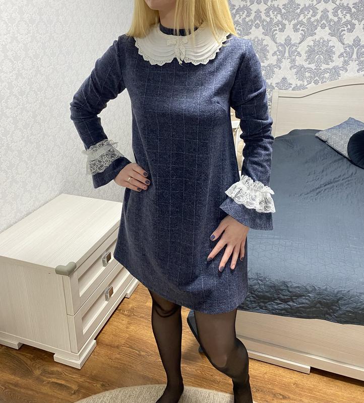Трендова сукня з красивим коміром і рукавами. Пошиття трапецією.
