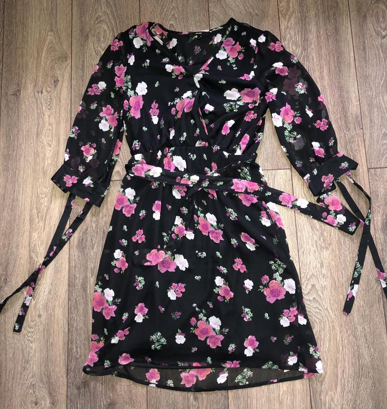 Очень красивое платье на запах. Рукава на завязках, пояс.Одето 1 раз