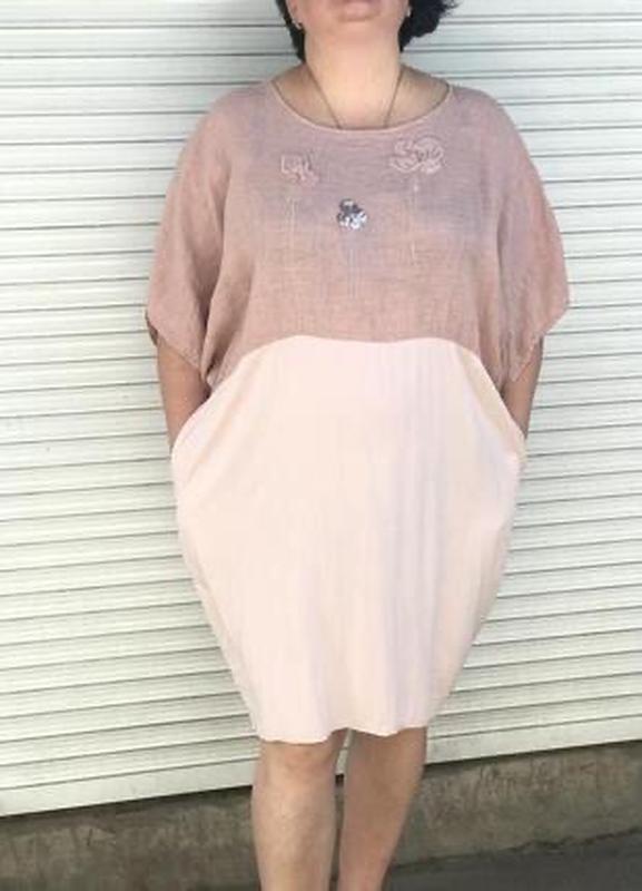 Итальянское Платье натуральное. Модель оверсайз, ассиметричный крой низа, рукава свободные.Размер универсальный 18-20-22-24Uk.Одет на 22Uk,рост 170см.