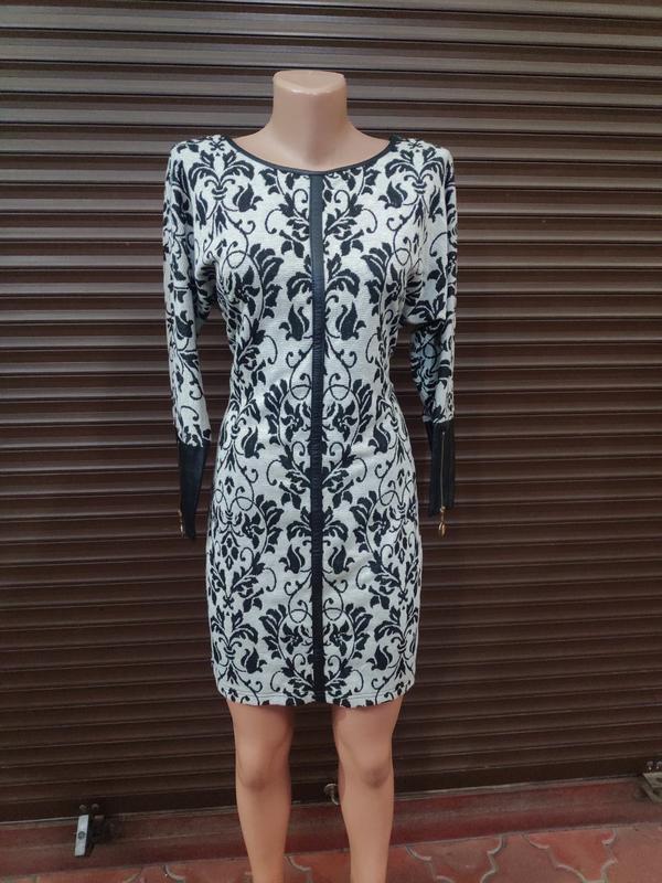 Плаття -туніка, шкіряні вставки.