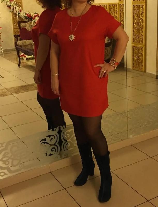 Красное платье,красивый цвет, спускной рукавчик,грудь 100-105см, бедра 100- 110см,длина 88см,рост на фото 164см