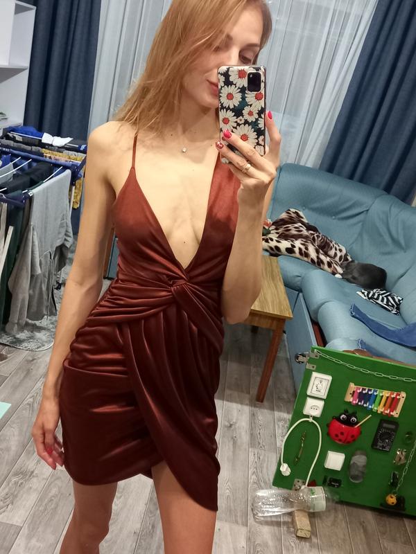 Шикарное сексуальное вечернее клубное атласное платье шоколадного цвета 🤎