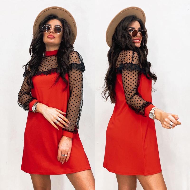 Цена снижена 🔥 Платье мод.158 Цена: 330 грн Ткань: креп дайвинг+сетка флок горох+кружево Размеры: 42-44; 44-46. Красные только 42-44 Фото реал! Детальные условия заказа читайте в информации обо мне