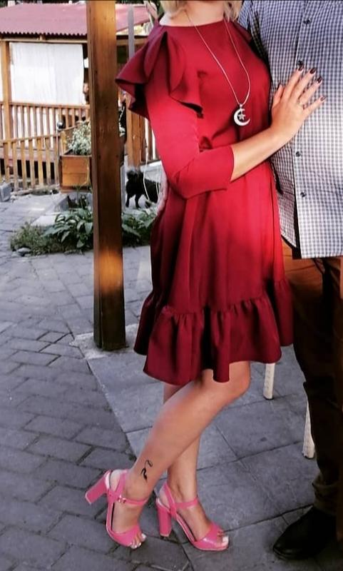 Плаття-трапеція, рукав 3/4,можна носити і під пояс, перешивала, відрізала рюші на рукавах