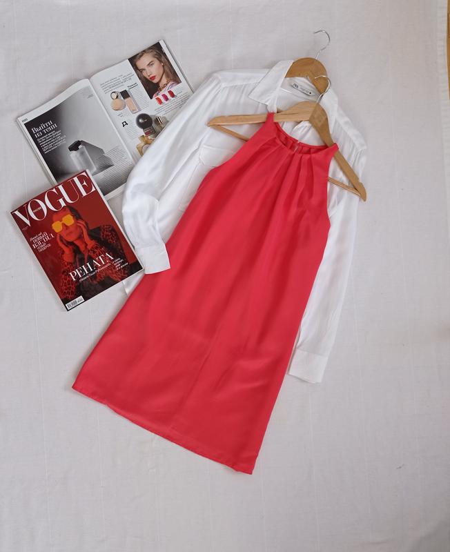 яскрава сатинова сукня від Mango з підкладкою, крій прямий, розмір XS, ПО грудей 43 см, довжина 85 см