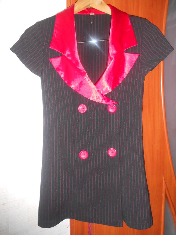 Стильна сукня з коміром. Воріт червоного кольору, фото відсвічує.