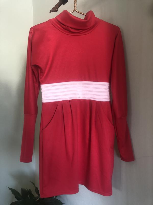 Плаття коралового кольору під шийку в ідеальному стані. Довжина - 85 см Довжина рукава - 72 см ПО грудей - 55 см ПО талії - 35 см ПО бедер - 53 см Тканина тягнеться.