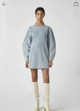 Джинсова міні-сукня з довгими повними рукавами і круглою горловиною. Виготовлений із 100% бавовни. Чудова якість, не підійшов розмір