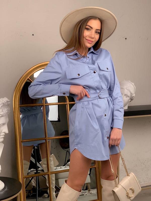 Платье - рубашка Мод 370ОР Ткань: плотный котон Размер: 42-44;46-48 Цвета: голубой , беж, пудра , хаки Фото Реал
