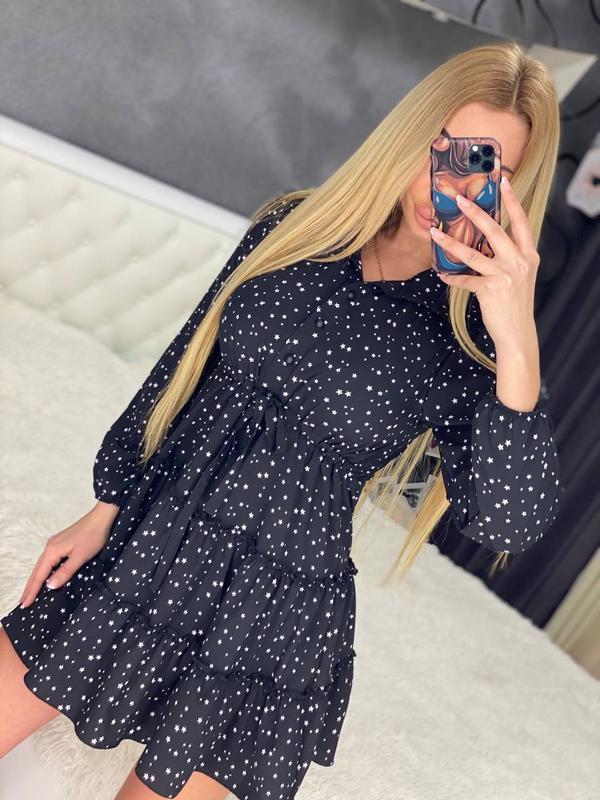 Женское красивое нарядное платье принтованое 💕💕💕 2 расцветки Рубашечный воротник Застежка планка На пояске Можно носить как оверсайз , можно приталить пояском Рукав под резинку Размер 42/46 Длина 86 Пог до 46 Рукав 60 см Цена:750 грн💥