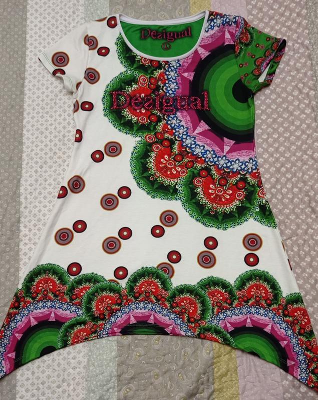 Стильное платье Desigual, весенний яркий принт, идеальное состояние. Замеры: ПОГ-48 см, длина рукава -15 см, длина платья-81/91 см.