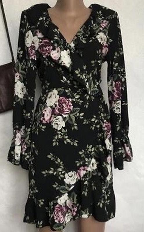 Платье на запах в цветочный принт,состояние новое без бумажной бирки.Размер 10Uk.Длина 86/89; Плечевая 37/41 ;Рукава 59; ПОГ 49-регулируется запахом; Пот 39-регулируется; ПОБ до 48.